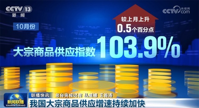 中國物流與采購聯合會今天(11月5日)公布,10月份中國大宗商品指數為102.8%。其中,大宗商品供應指數為103.9%,較上月上升0.5個百分點,指數三連升至近期高點。各主要商品中,鐵礦石、煤炭、有色金屬和汽車供應量繼續(xù)增長,并且增速加快。