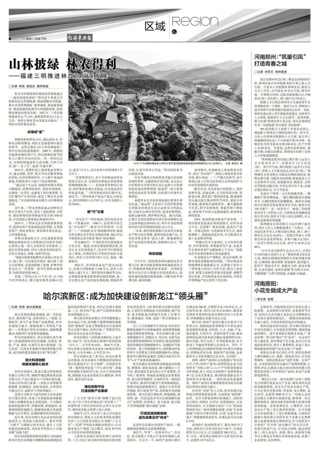 “首張林票發(fā)行、首個全國林業(yè)改革發(fā)展綜合試點(diǎn)市、首創(chuàng)國有林場差異化績效管理激勵機(jī)制……一系列改革舉措先行先試,始終緊扣實(shí)現(xiàn)生態(tài)效益、社會效益和百姓收益共贏?!比魇辛謽I(yè)局局長陳平說,2022年,三明市林業(yè)產(chǎn)業(yè)總產(chǎn)值達(dá)1258億元,農(nóng)民涉林收入達(dá)7107元,占可支配收入的30.6%。