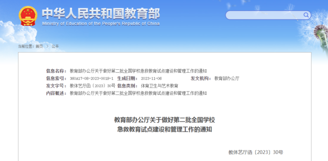 通知一并發(fā)布《第二批全國學校急救教育試點工作指南》,從總體要求、重點任務(wù)兩個方面部署推進試點工作。