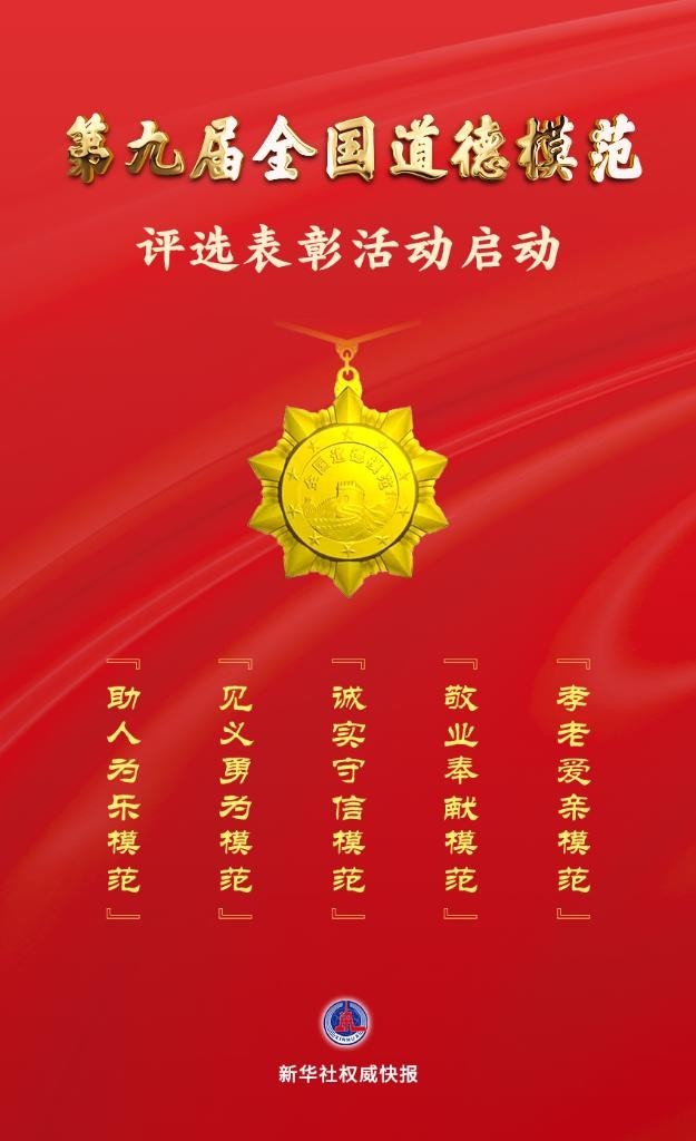 據(jù)悉,第九屆全國(guó)道德模范分為“助人為樂(lè)模范”“見(jiàn)義勇為模范”“誠(chéng)實(shí)守信模范”“敬業(yè)奉獻(xiàn)模范”“孝老愛(ài)親模范”5個(gè)類(lèi)別,通過(guò)群眾推薦、遴選審核、公示宣傳、投票評(píng)選等步驟評(píng)選產(chǎn)生。