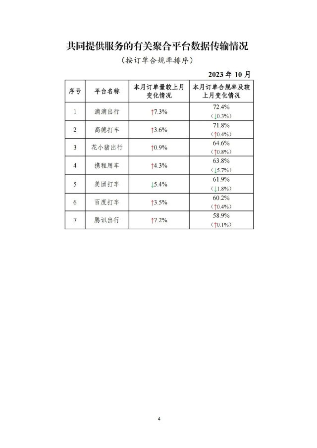 央視網(wǎng)消息:交通運(yùn)輸部公眾號(hào)11月20日發(fā)布網(wǎng)約車監(jiān)管信息交互系統(tǒng)發(fā)布2023年10月份網(wǎng)約車行業(yè)運(yùn)行基本情況。據(jù)網(wǎng)約車監(jiān)管信息交互系統(tǒng)統(tǒng)計(jì),截至2023年10月31日,全國共有334家網(wǎng)約車平臺(tái)公司取得網(wǎng)約車平臺(tái)經(jīng)營許可,環(huán)比增加4家;各地共發(fā)放網(wǎng)約車駕駛員證633.4萬本、車輛運(yùn)輸證270.6萬本,環(huán)比分別增長2.4%、2.7%。網(wǎng)約車監(jiān)管信息交互系統(tǒng)10月份共收到訂單信息8.09億單,環(huán)比上升2.1%。從本月情況看,有以下特點(diǎn):