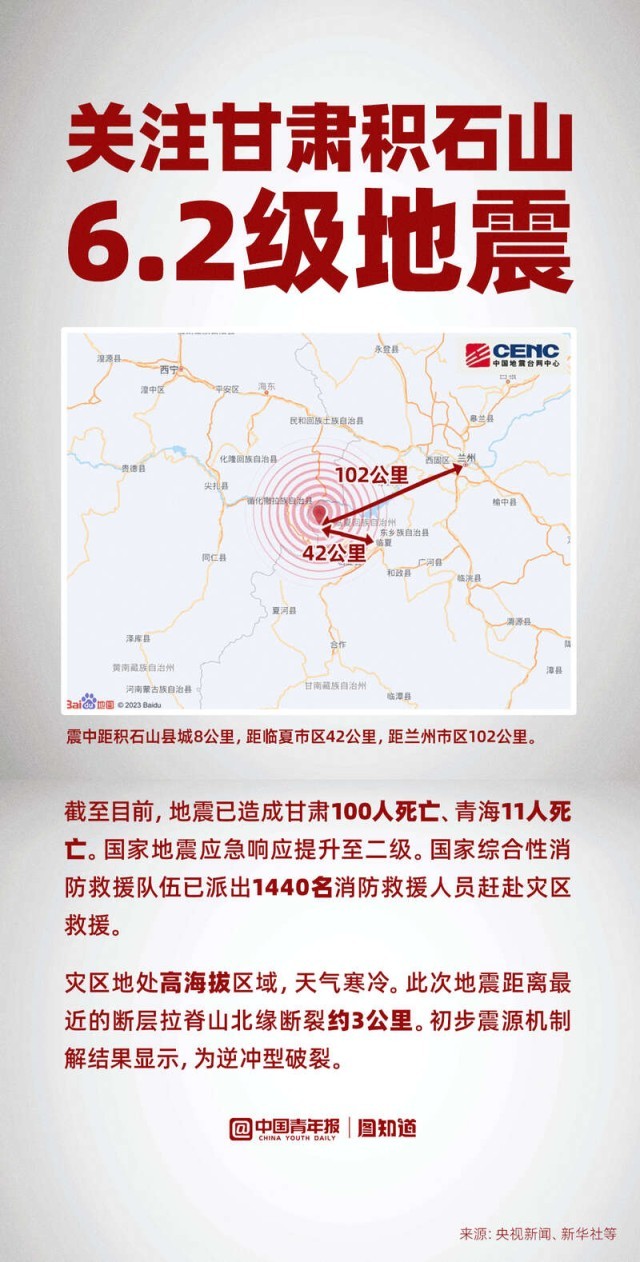 圖知道|關(guān)注甘肅積石山6.2級地震:已造成至少111人死亡,救援進行中