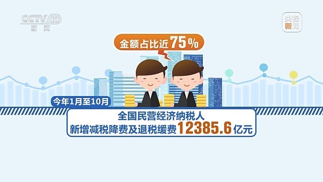 我國延續(xù)、優(yōu)化的這批階段性稅費(fèi)優(yōu)惠政策中,民營經(jīng)濟(jì)納稅人是主要受益對象。國家稅務(wù)總局?jǐn)?shù)據(jù)顯示,今年1月至10月,全國民營經(jīng)濟(jì)納稅人新增減稅降費(fèi)及退稅緩費(fèi)12385.6億元,金額占比近75%。