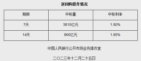 中新網(wǎng)12月25日電 據(jù)央行網(wǎng)站消息,為維護(hù)年末流動(dòng)性合理充裕,2023年12月25日人民銀行以利率招標(biāo)方式開展了4710億元7天期和14天期逆回購操作。具體情況如下: