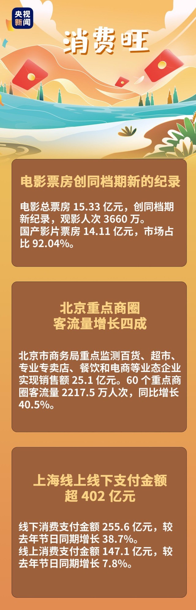 元旦假期中,大街小巷“煙火氣”升騰,持續(xù)涌動(dòng)的消費(fèi)熱情也不斷刷新各項(xiàng)數(shù)據(jù)??靵?lái)一起盤(pán)點(diǎn)元旦假期有哪些亮眼成績(jī)↓↓↓