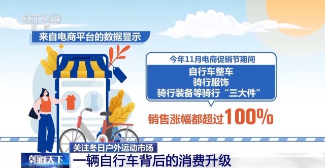 來(lái)自電商平臺(tái)的數(shù)據(jù)顯示,今年11月電商促銷節(jié)期間,自行車整車、騎行服飾、騎行裝備等騎行“三大件”的銷售漲幅都超過(guò)100%。其中公路自行車暴漲300%、自行車碼表及配件增長(zhǎng)230%。