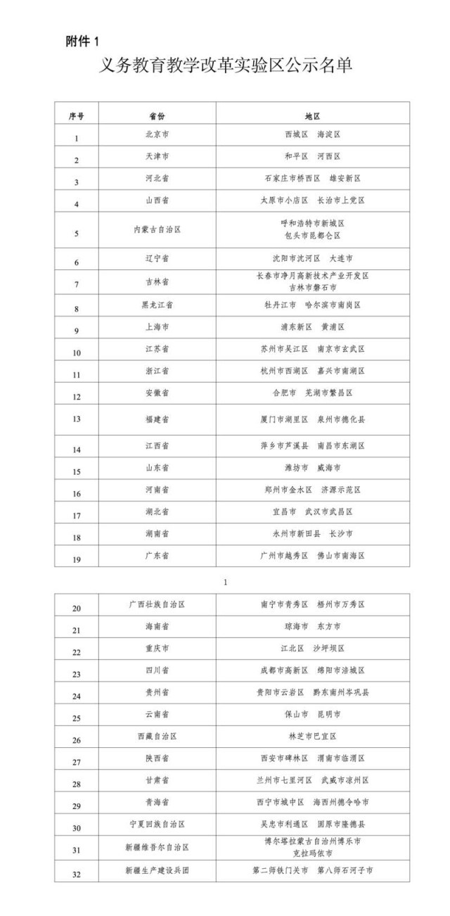 教育部公示義務教育教學改革63個實驗區(qū)和189個實驗校