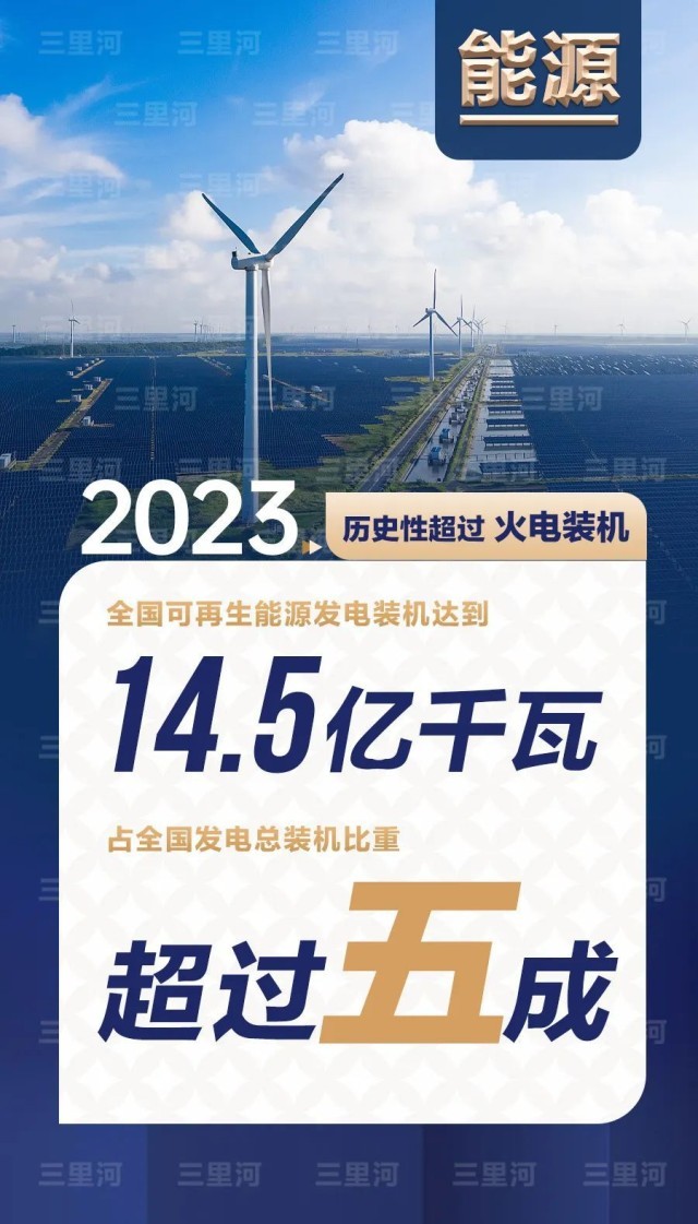 2023年,全國可再生能源發(fā)電裝機(jī)達(dá)到14.5億千瓦,占全國發(fā)電總裝機(jī)比重超過五成,歷史性超過火電裝機(jī)。