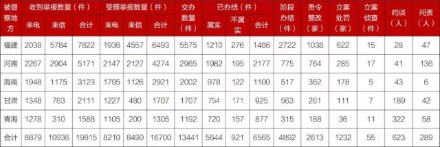 截至2023年12月31日,各督察組共收到群眾來電、來信舉報19815件,受理有效舉報16700件,經(jīng)梳理合并重復(fù)舉報,累計向相關(guān)省轉(zhuǎn)辦13441件。相關(guān)省已辦結(jié)或階段辦結(jié)11457件。其中,立案處罰1232家,立案偵查55件;約談黨政領(lǐng)導(dǎo)干部623人,問責(zé)黨政領(lǐng)導(dǎo)干部289人。