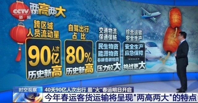 根據(jù)交通運輸部此前發(fā)布的數(shù)據(jù),今年春運期間全國跨區(qū)域人員流動量預(yù)計將達(dá)到90億人次,創(chuàng)歷史新高。
