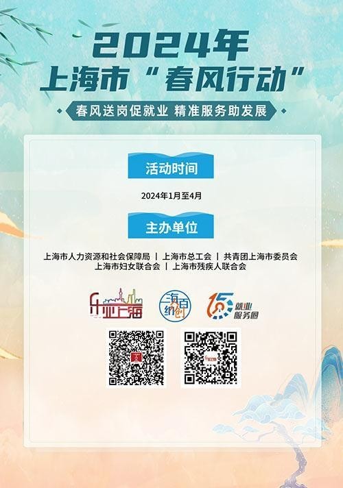 2024年春風(fēng)行動正在各地火熱開展。今天,人力資源社會保障部公布各地春風(fēng)行動活動專區(qū)、招聘服務(wù)平臺以及微信小程序,發(fā)布現(xiàn)場招聘會、網(wǎng)上招聘會、直播帶崗等活動安排以及企業(yè)用工需求,將崗位送到勞動者身邊。大家可通過掃描下方二維碼、點擊網(wǎng)站鏈接、進入微信小程序查看。