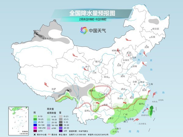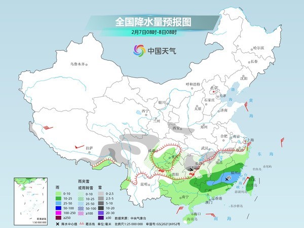 今天(2月7日)南方大范圍雨雪天氣持續(xù),湖南中南部、江西西南部等地部分地區(qū)有大雪,局地暴雪;貴州中部和東部、湖南中南部以及江西西北部山區(qū)、浙江中南部山區(qū)等地部分地區(qū)有凍雨。明天,南方雨雪將開始減弱,到除夕全國大部地區(qū)都將迎來晴朗天氣。同時,隨著雨雪消退,持續(xù)多日的南方濕冷天氣也將在春節(jié)假期間迎來轉(zhuǎn)折。