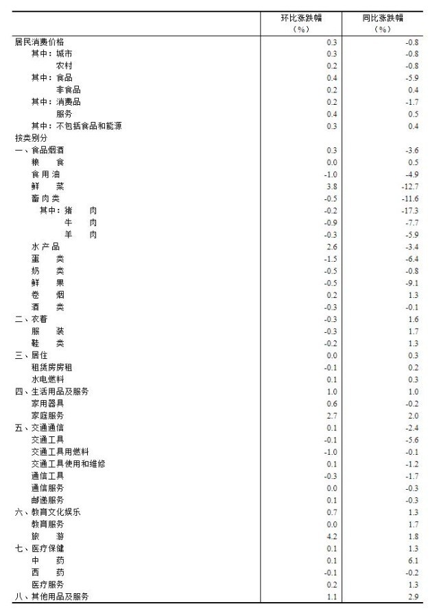 2024年1月份居民消費(fèi)價(jià)格環(huán)比上漲0.3%