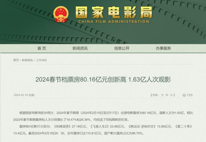 中新網(wǎng)北京2月23日電(記者 張曦)2024春節(jié)檔已進(jìn)入尾聲。