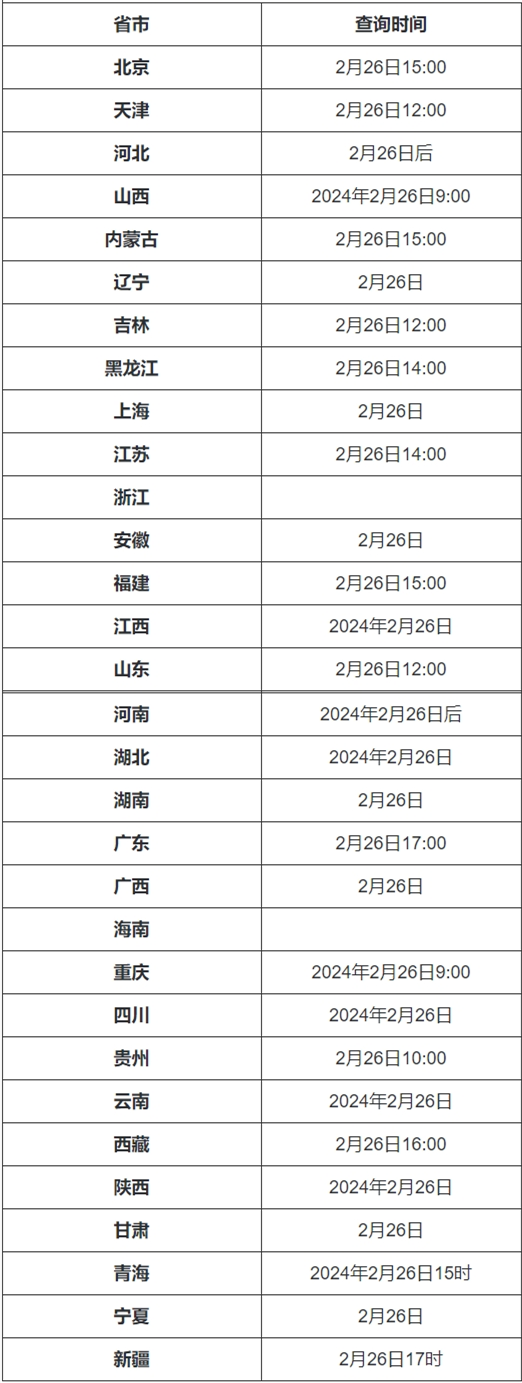 山西、重慶考生可于26日9時(shí)起查詢;天津、吉林、山東考生可在26日12時(shí)起查詢;黑龍江、江蘇考生可以在26日14時(shí)起查詢;北京、福建、青海、內(nèi)蒙古考生可于26日15時(shí)起查詢;廣東、新疆考生可于26日17時(shí)起查詢。詳見(jiàn)>>2024研考初試成績(jī)查詢時(shí)間匯總