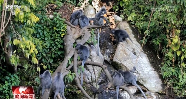 原來爭(zhēng)相帶娃是菲氏葉猴家族獨(dú)特的育兒方式。菲氏葉猴聚群而居,每個(gè)家庭成員都想和“小金猴”有更多親密接觸。此外,據(jù)護(hù)林員介紹,這些菲氏葉猴還有著“謙謙君子”的美譽(yù)。
