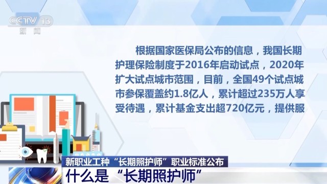 記者從國(guó)家醫(yī)保局了解到,長(zhǎng)期照護(hù)師是國(guó)家醫(yī)保局為穩(wěn)步推進(jìn)長(zhǎng)期護(hù)理保險(xiǎn)制度建設(shè),在人力資源社會(huì)保障部支持下新設(shè)置的一個(gè)職業(yè)工種。