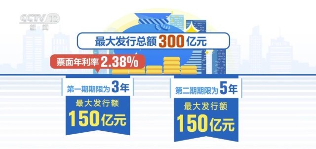 根據(jù)財政部公告,2024年第一期、第二期儲蓄國債(憑證式)均為固定利率、固定期限品種,最大發(fā)行總額300億元。其中,第一期期限為3年,最大發(fā)行額150億元,票面年利率2.38%;第二期期限為5年,最大發(fā)行額150億元,票面年利率2.5%。
