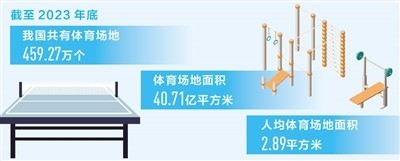 本報(bào)北京3月23日電 (記者李洋、季芳、劉碩陽(yáng))國(guó)家體育總局日前發(fā)布數(shù)據(jù)顯示:截至2023年底,我國(guó)共有體育場(chǎng)地459.27萬個(gè),體育場(chǎng)地面積40.71億平方米,人均體育場(chǎng)地面積2.89平方米,提前實(shí)現(xiàn)了《“十四五”體育發(fā)展規(guī)劃》中提出的2.6平方米的人均體育場(chǎng)地面積目標(biāo)。