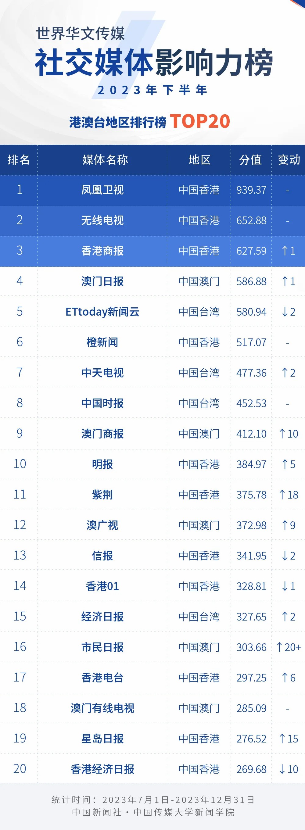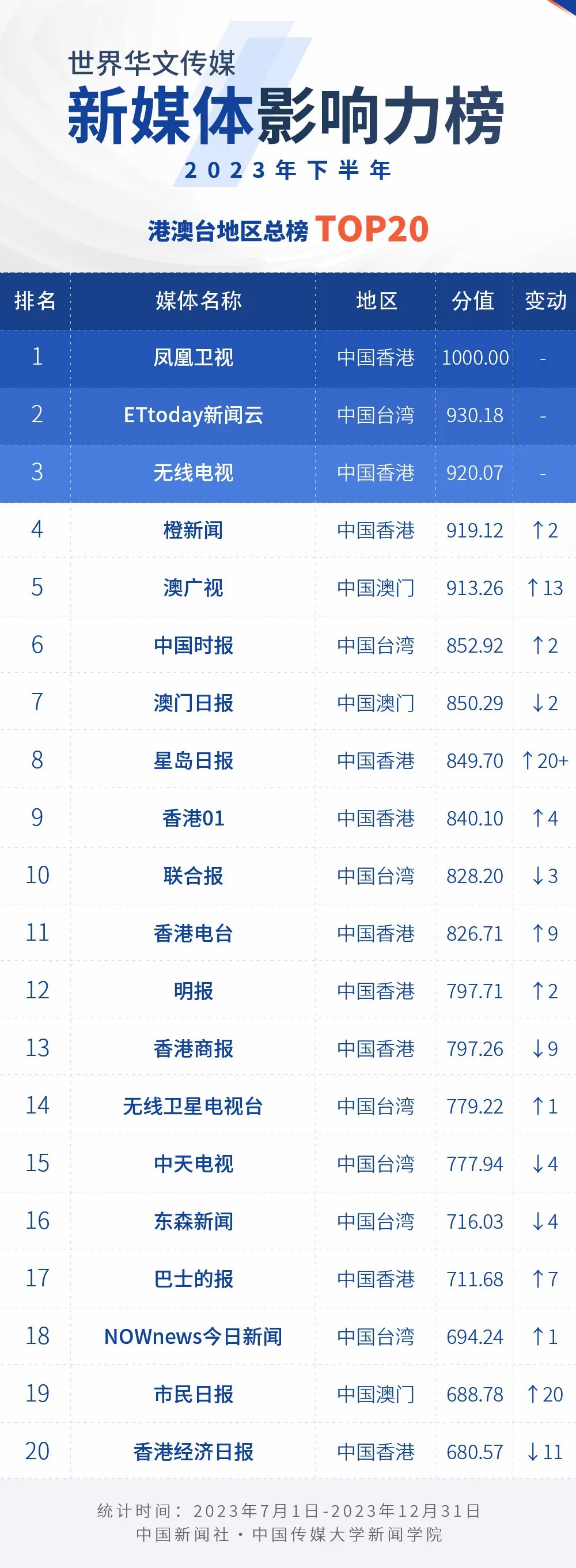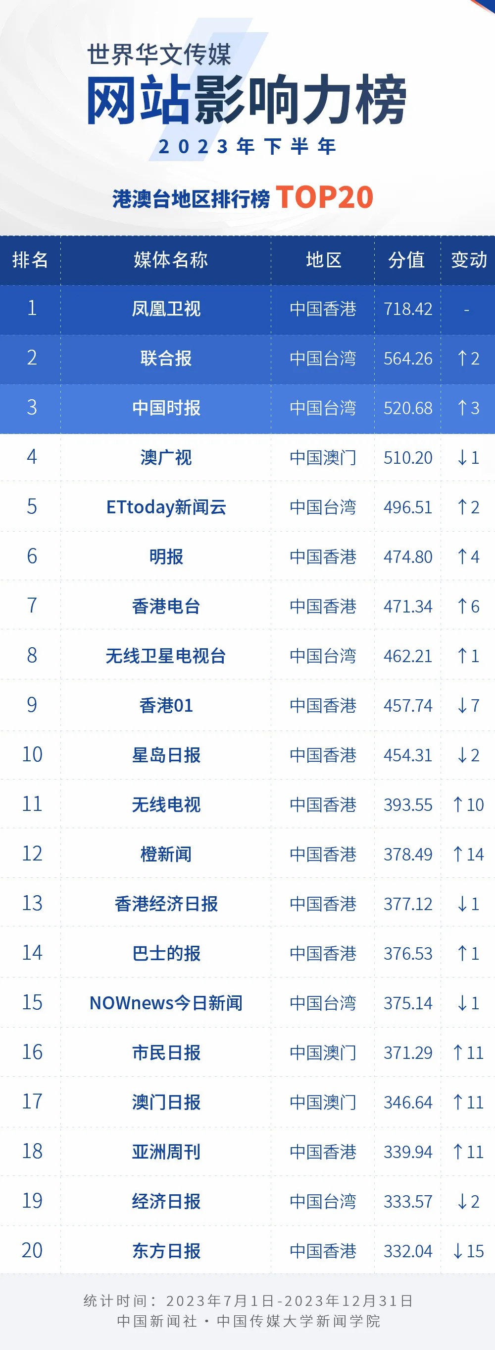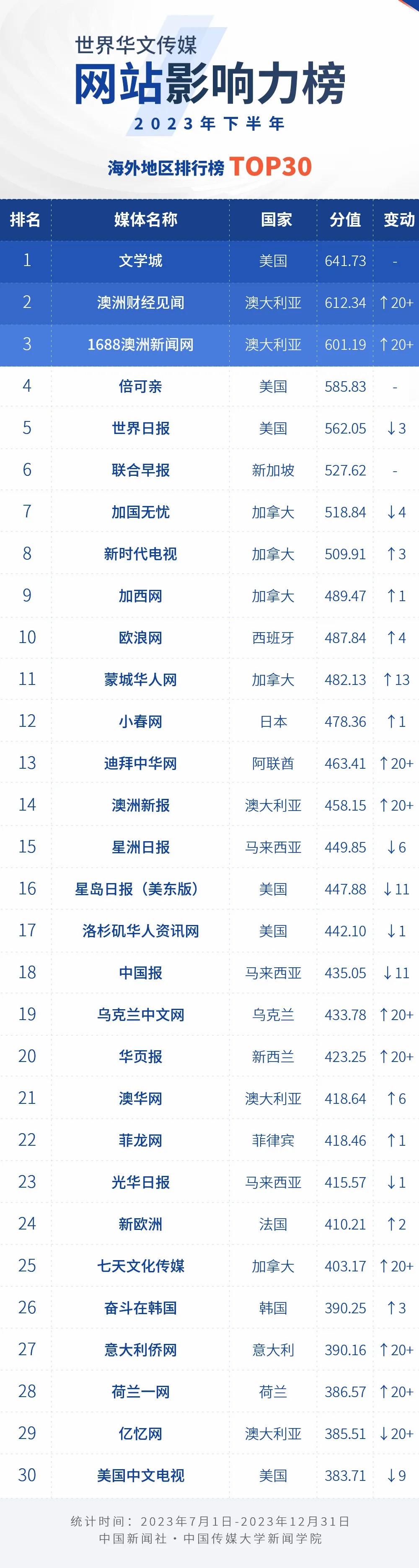 中國新聞社與中國傳媒大學(xué)新聞學(xué)院持續(xù)開展“世界華文傳媒新媒體影響力”測評(píng)項(xiàng)目,現(xiàn)根據(jù)2023年下半年世界華文傳媒新媒體的業(yè)務(wù)數(shù)據(jù),發(fā)布2023年下半年榜。