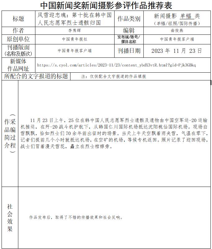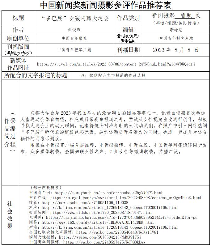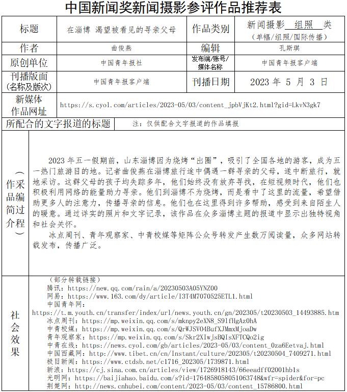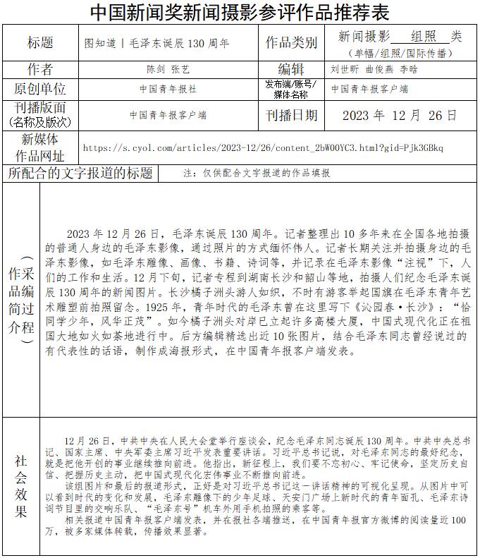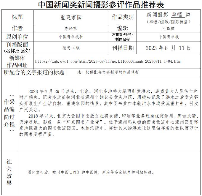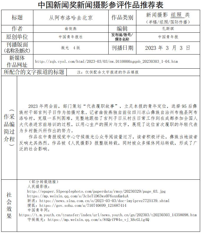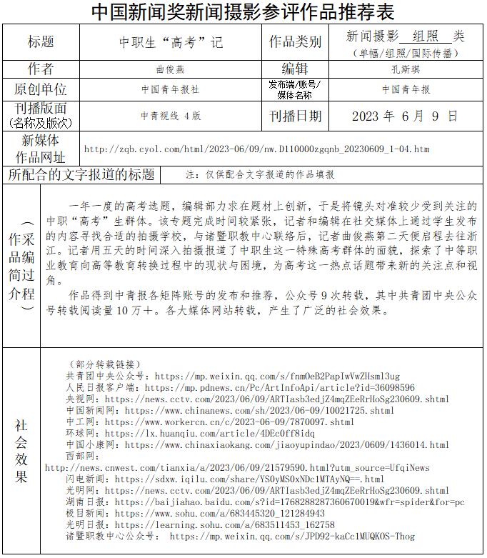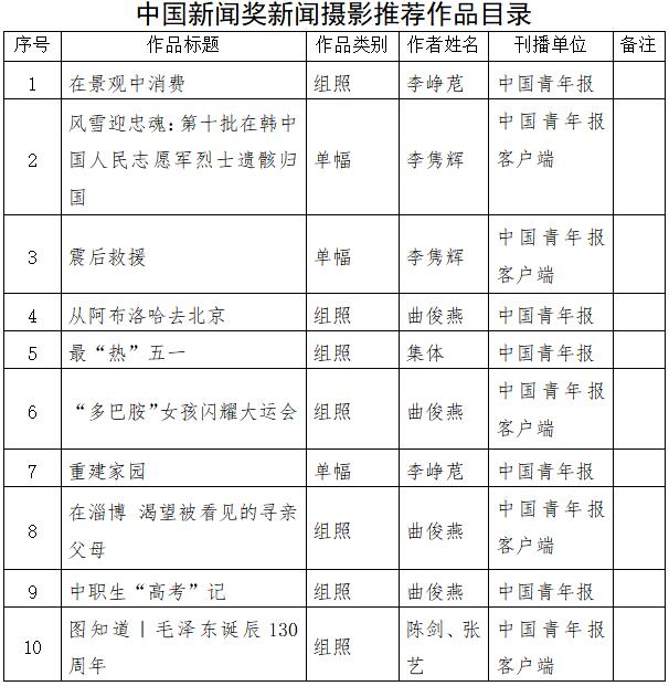 中國青年報(bào)社推薦參評第34屆中國新聞獎新聞攝影作品專項(xiàng)初評公示