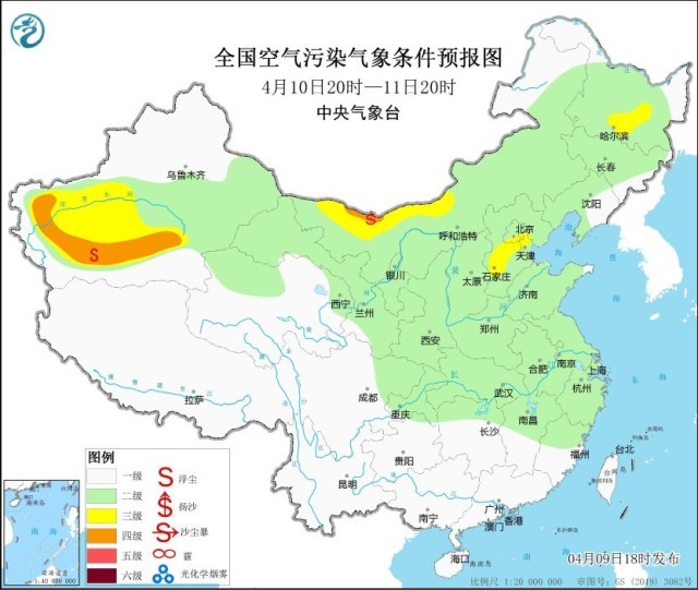 央視網(wǎng)消息:中央氣象臺網(wǎng)站4月9日18時發(fā)布環(huán)境氣象公報: