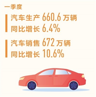 一季度汽車(chē)銷量同比增長(zhǎng)10.6% 新能源汽車(chē)國(guó)內(nèi)銷量同比增長(zhǎng)33.3%
