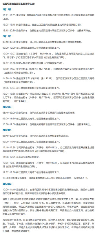 該密切接觸者近期主要活動(dòng)軌跡如下: