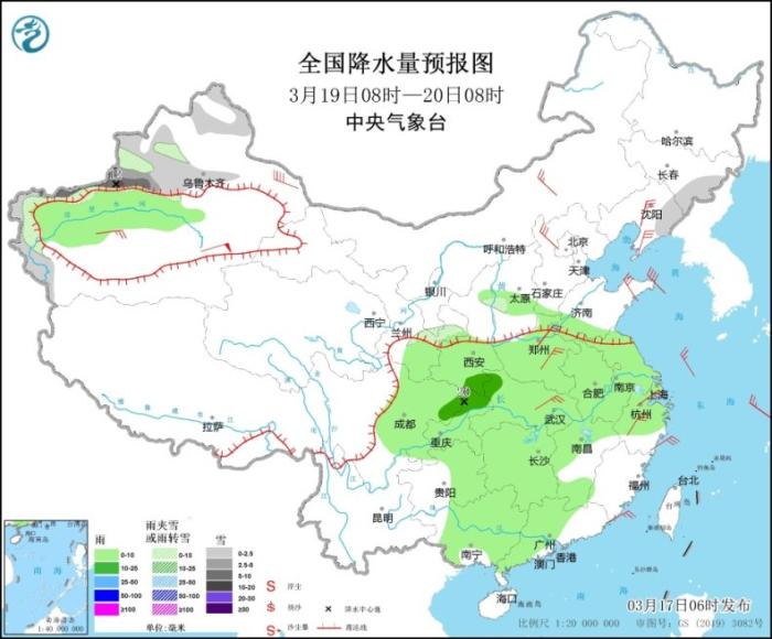 3月17日8時(shí)至18日8時(shí),新疆北疆西部和沿天山一帶、青海北部、內(nèi)蒙古中西部、山西中北部、河北大部、北京、天津、遼寧西部等地部分地區(qū)有小到中雪或雨夾雪,其中,內(nèi)蒙古中部偏南地區(qū)、山西北部、河北西北部和北京西北部山區(qū)等地部分地區(qū)有大雪,局地暴雪(10~15毫米)。陜西中北部、河南中部、山東南部、江淮、江南大部、華南大部、西南地區(qū)東南部、臺(tái)灣島等地部分地區(qū)有小到中雨,其中,江蘇中南部、安徽東南部、上海等地部分地區(qū)有大雨,局地有暴雨(50~60毫米),上述部分地區(qū)伴有短時(shí)強(qiáng)降水(最大小時(shí)降雨量20~40毫米)。內(nèi)蒙古中西部、青海東部、黃淮、江淮、江南北部河等地部分地區(qū)有4~6級(jí)風(fēng)。渤海、黃海、東海等地部分海域有6~8級(jí)風(fēng)。