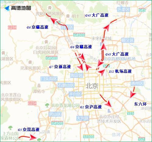 4日、5日12至20時(shí),進(jìn)京方向的交通壓力將明顯上升,其中京藏高速八達(dá)嶺、居庸關(guān)、西三旗、北沙灘,京承高速黃港、太陽(yáng)宮,京港澳高速西道口、琉璃河,京開(kāi)高速榆垡、玉泉營(yíng)等路段車(chē)流較為集中。