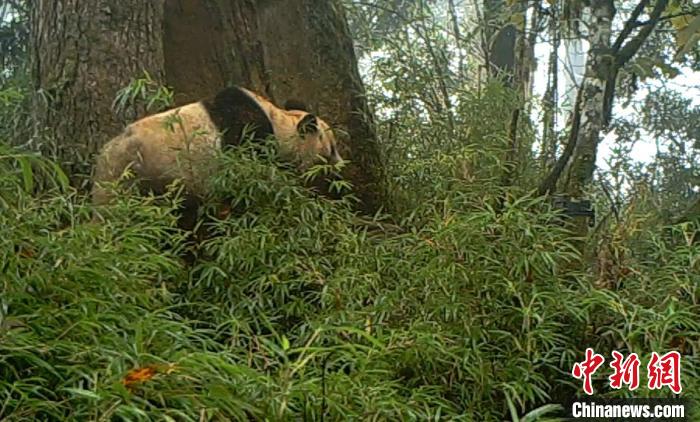 四川寶興:野生大熊貓?jiān)跇涠粗兴盎鼗\覺”被記錄