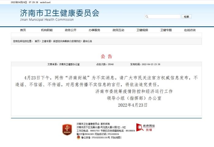 濟(jì)南:網(wǎng)傳“濟(jì)南封城”為不實(shí)消息