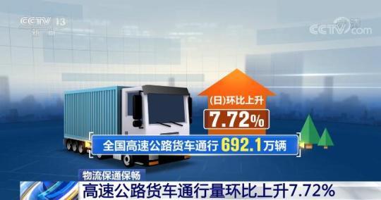 央視網(wǎng)消息:最新的全國(guó)物流保通保暢運(yùn)行數(shù)據(jù)顯示,全國(guó)貨運(yùn)物流有序運(yùn)行,高速公路貨車通行量持續(xù)恢復(fù)。