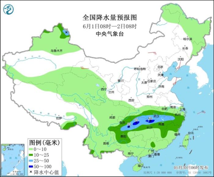 6月1日08時(shí)至2日08時(shí),新疆北疆東部、湖北南部、江南大部、四川盆地東南部、貴州等地的部分地區(qū)有中到大雨,其中,湖南北部、江西西北部、貴州東北部等地局地暴雨(50~60毫米)。內(nèi)蒙古中部、遼東半島、甘肅河西、山東半島等地的部分地區(qū)有4~6級(jí)風(fēng)。東海南部海域有4~6級(jí)、陣風(fēng)7級(jí)的西南風(fēng),臺(tái)灣以東洋面有5~6級(jí)、陣風(fēng)7級(jí)的偏南風(fēng)。