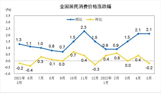 中新財(cái)經(jīng)6月10日電 國(guó)家統(tǒng)計(jì)局10日公布數(shù)據(jù)顯示,2022年5月份,全國(guó)居民消費(fèi)價(jià)格(CPI)同比上漲2.1%。其中,食品價(jià)格上漲2.3%,非食品價(jià)格上漲2.1%。