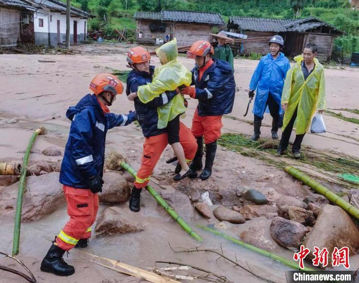 圖為在轉(zhuǎn)移過程中,救援人員抱起受困人員跨過急流?!∷竞?攝