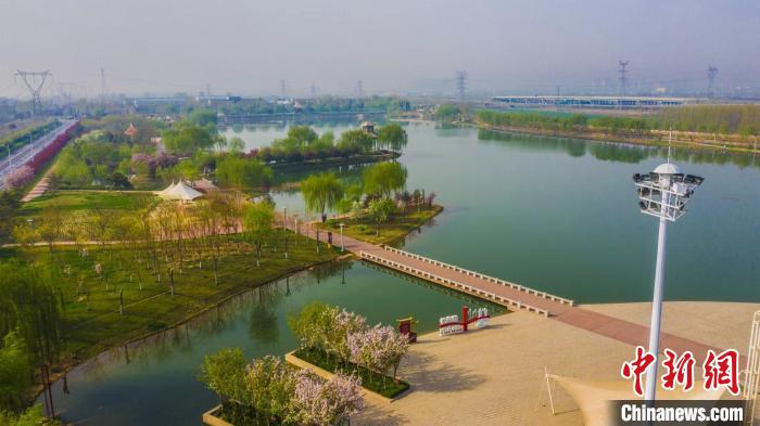邢臺(tái)市任澤區(qū)邢州湖公園綠道生態(tài)系統(tǒng)。(無(wú)人機(jī)照片) 劉云洲 攝