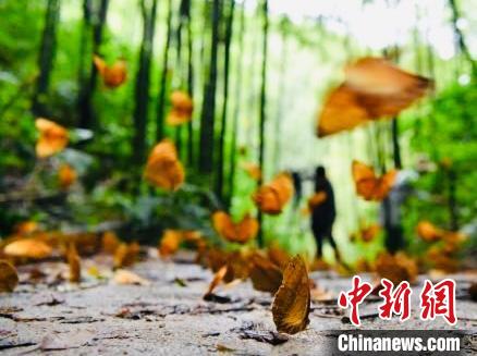 圖為金平縣的中國(guó)·紅河蝴蝶谷內(nèi)箭環(huán)蝶幼蟲在短時(shí)間大量集中羽化成蝶。 劉冉陽(yáng) 攝