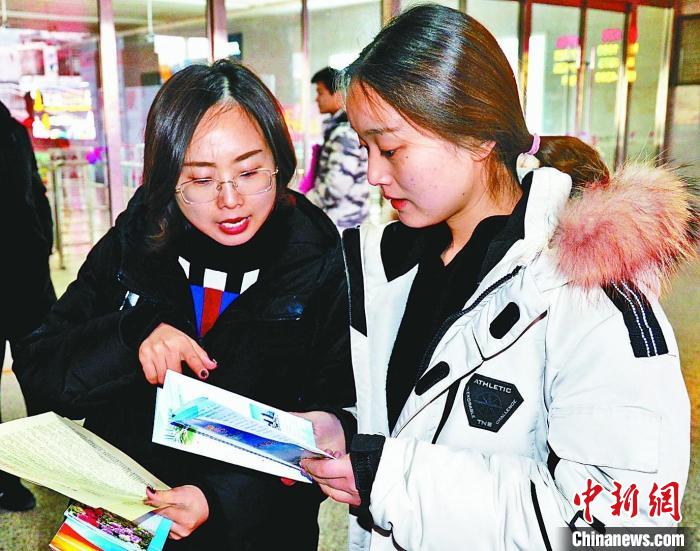 菏澤市返鄉(xiāng)創(chuàng)業(yè)服務(wù)中心工作人員為返鄉(xiāng)人員講解創(chuàng)業(yè)扶持政策?!『蕽墒形麄鞑抗﹫D。