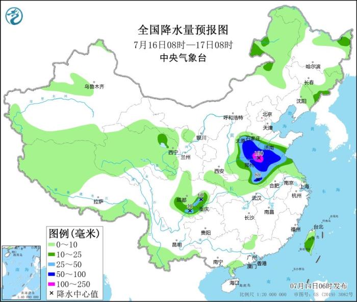 全國降水量預報圖(7月15日08時-16日08時)
