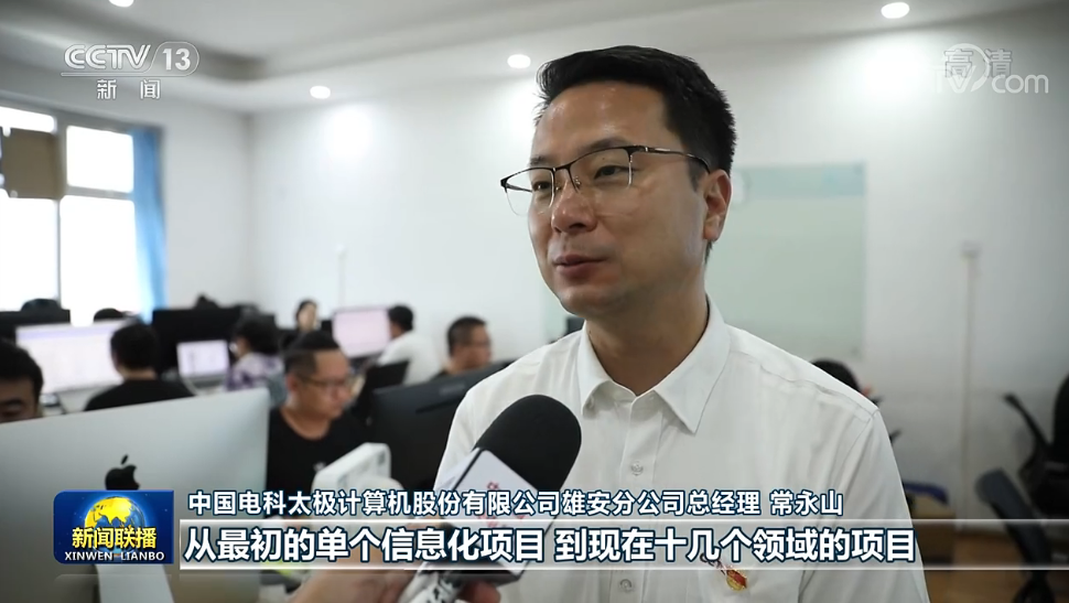 中國電科太極計(jì)算機(jī)股份有限公司雄安分公司總經(jīng)理 常永山:我們剛來新區(qū)的時(shí)候,團(tuán)隊(duì)只有兩三個(gè)人,經(jīng)過這幾年的發(fā)展已經(jīng)有一百二三十人了,從最初單個(gè)的信息化項(xiàng)目,到現(xiàn)在十幾個(gè)領(lǐng)域的項(xiàng)目。