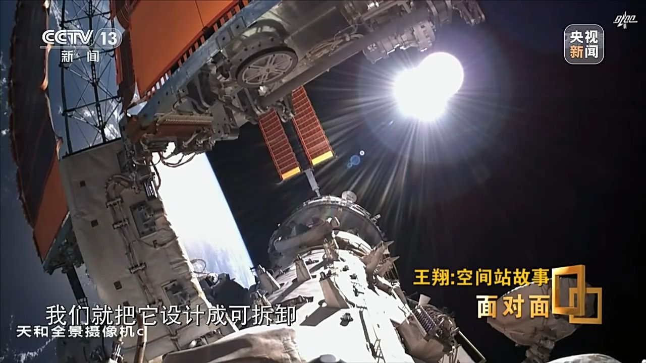 王翔:是的,但是它可以更新,它是一個(gè)可擴(kuò)展的開(kāi)放系統(tǒng),我們是可以繼續(xù)串聯(lián)一個(gè)擴(kuò)展艙,這個(gè)擴(kuò)展艙可以帶一個(gè)新的節(jié)點(diǎn)艙,我又能再擴(kuò)展,老艙段新艙段它是可以不斷更替的,用這種手段也可以延長(zhǎng)我們?cè)谲壒ぷ骱惋w行的時(shí)間。
