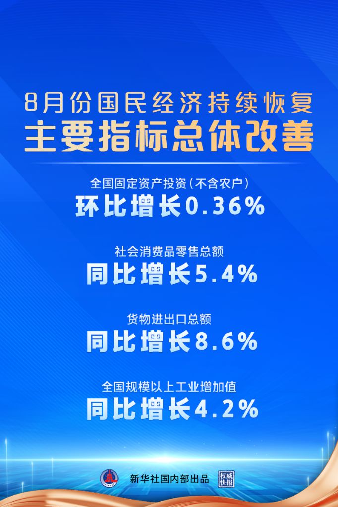 國家統(tǒng)計局:8月份國民經(jīng)濟(jì)持續(xù)恢復(fù),主要指標(biāo)總體改善