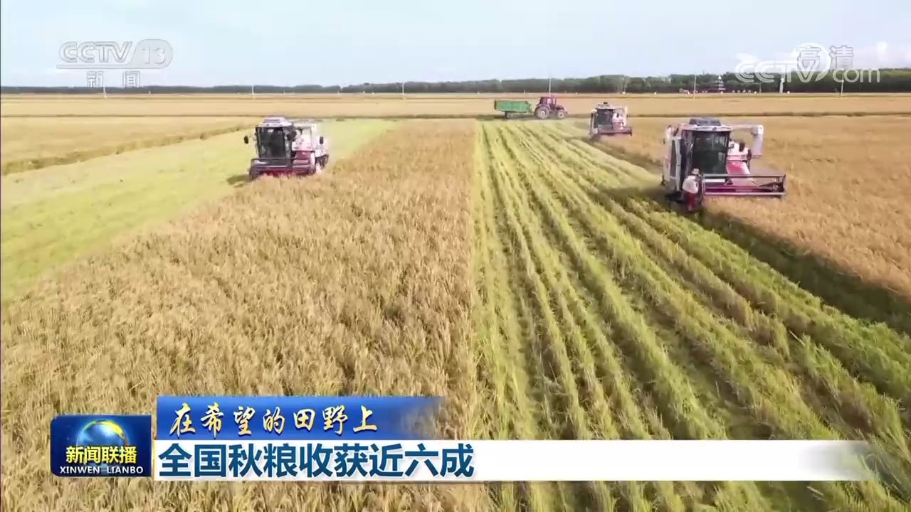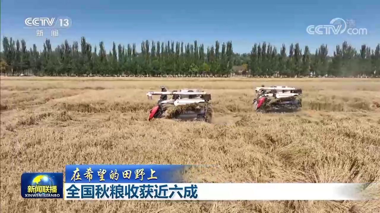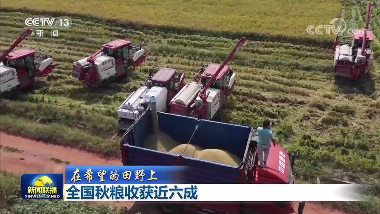 央視網(wǎng)消息(新聞聯(lián)播):據(jù)農(nóng)業(yè)農(nóng)村部最新農(nóng)情調(diào)度,目前,全國秋糧收獲近六成。各糧食產(chǎn)區(qū)搶抓農(nóng)時(shí)開展機(jī)收作業(yè),確保秋糧顆粒歸倉。