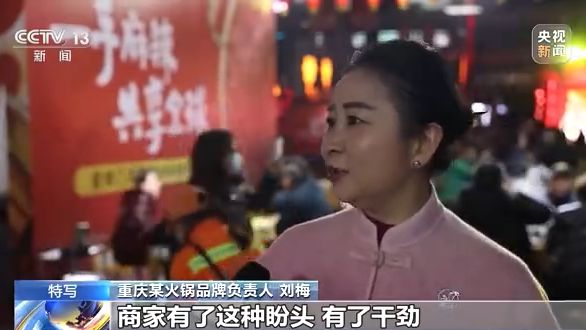 重慶某火鍋品牌負責人 劉梅:商家有了這種盼頭,有了干勁,再加上有市民觀望,還來吃。今天都排隊,這種感覺好嘛,我們有一句話叫,賺不賺錢,攤子要扯圓。這種感覺就是一種精氣神的感覺。