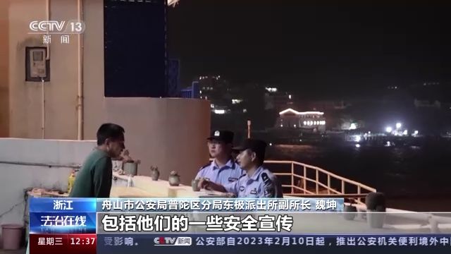 舟山市公安局普陀區(qū)分局東極派出所副所長(zhǎng) 魏坤:可能你連吃飯的時(shí)間都要壓縮,第一個(gè)日常巡邏是不間斷的,第二個(gè)就是平常的民宿檢查,對(duì)在島的游客,包括他們的一些安全宣傳,我們也要做到位。