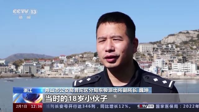 舟山市公安局普陀區(qū)分局東極派出所副所長(zhǎng) 魏坤:當(dāng)時(shí)的18歲小伙子,朝著安徽的方向看看家,想想家,海的話就是一望無際,感覺(自己)好像一葉扁舟,看也看不到遠(yuǎn)方。