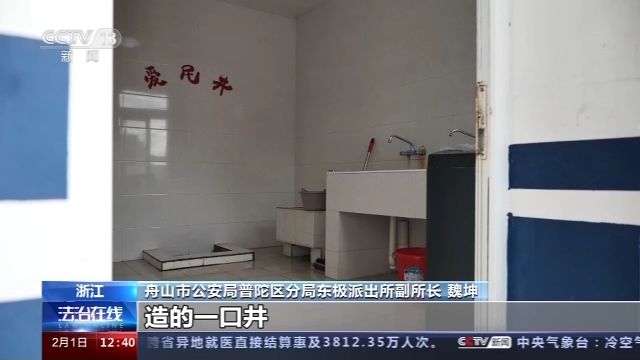 舟山市公安局普陀區(qū)分局東極派出所副所長(zhǎng) 魏坤:這個(gè)是我們建所以來造的一口井,當(dāng)時(shí)也是便于所里的官兵用水方便,當(dāng)時(shí)我們島上也是缺水,當(dāng)時(shí)的老百姓都到我們這邊來打水,所以說這口井,也是開放共享給他們的。