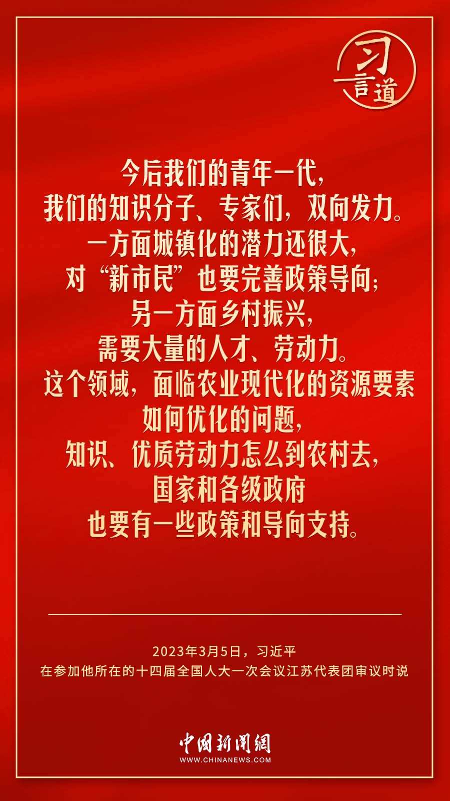 中共中央總書記、國家主席、中央軍委主席習(xí)近平3月5日下午在參加他所在的十四屆全國人大一次會(huì)議江蘇代表團(tuán)審議時(shí)說——