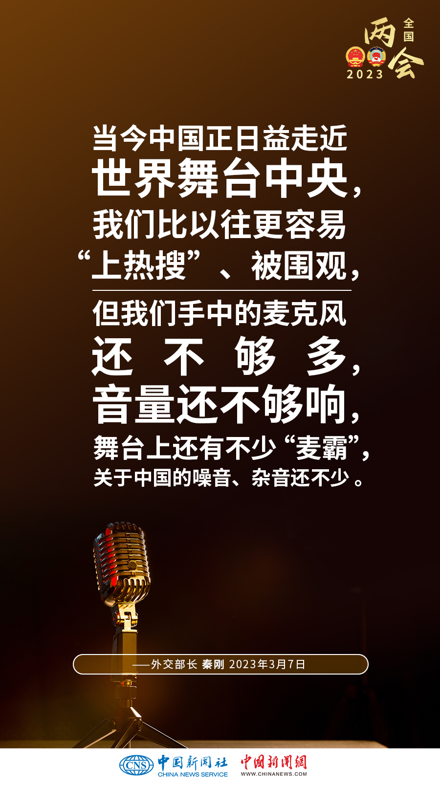 秦剛:當(dāng)今中國正日益走近世界舞臺中央,我們比以往更容易“上熱搜”、被圍觀,但我們手中的麥克風(fēng)還不夠多,音量還不夠響,舞臺上還有不少“麥霸”,關(guān)于中國的噪音、雜音還不少。提升中國的國際話語權(quán),當(dāng)代中國青年義不容辭。